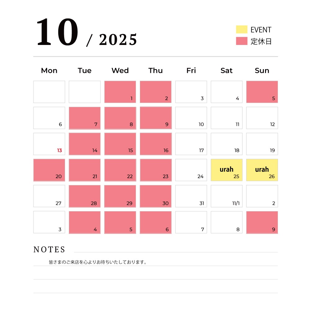 10月営業日