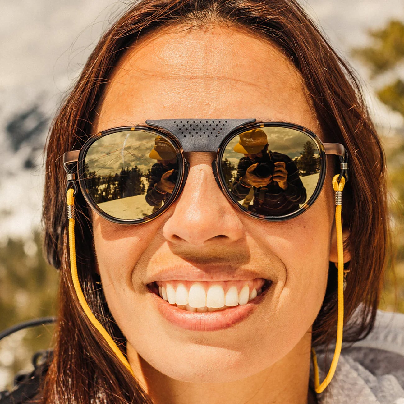 機能性を最大限に引き出すスロープスタイル。ストラダは、小~中型の頭の人のためのラウンドフレームです。高級メタル素材に施されたフィリグリーデザインが、格調高いシェードのディテールをさらに高めています。取り外し可能なサイドシールドとセンターピースにはパンチング加工が施され、効率的なエアフローで日差しをしっかりガード。サイドシールドの内側はブラックで、ゲレンデでの眩しい日差しを遮ります。