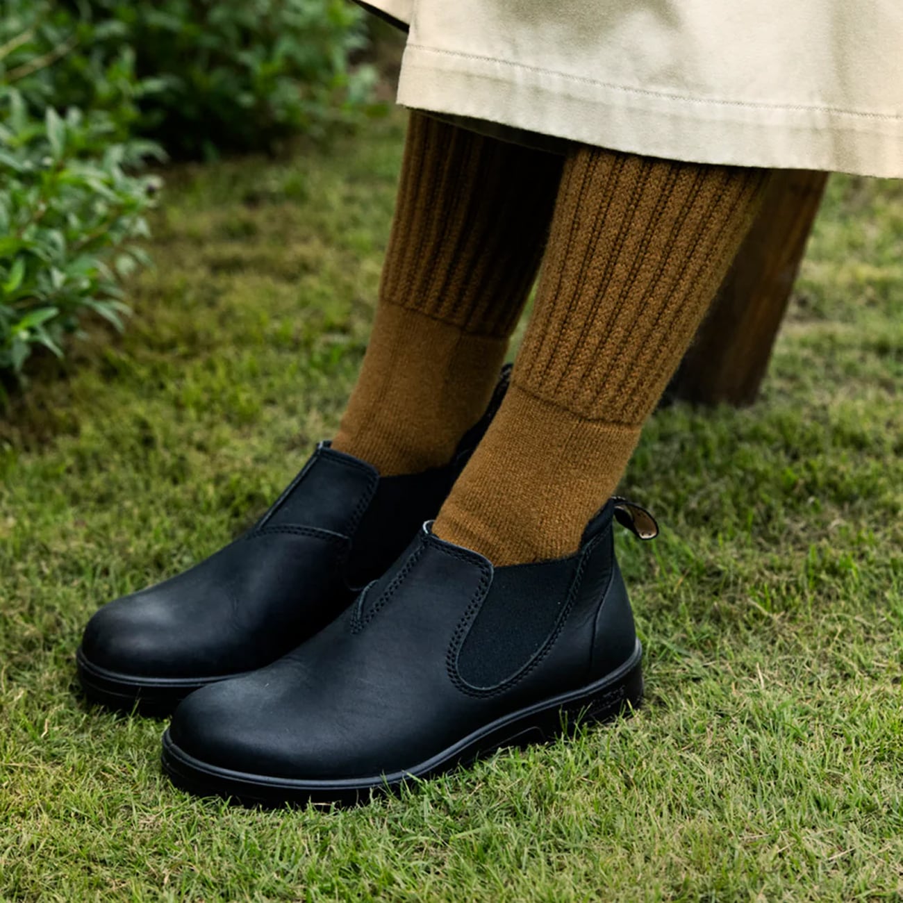 メリノラムウールを贅沢に使用したハイソックスは、冬の防寒対策にオススメです。ラムウールは繊維が細く、チクチクしにくいやさしい肌あたりが特徴。保温性も高く、足元をしっかりと温めてくれます。ナイロン混紡糸を使用することで、耐久性も向上しました。