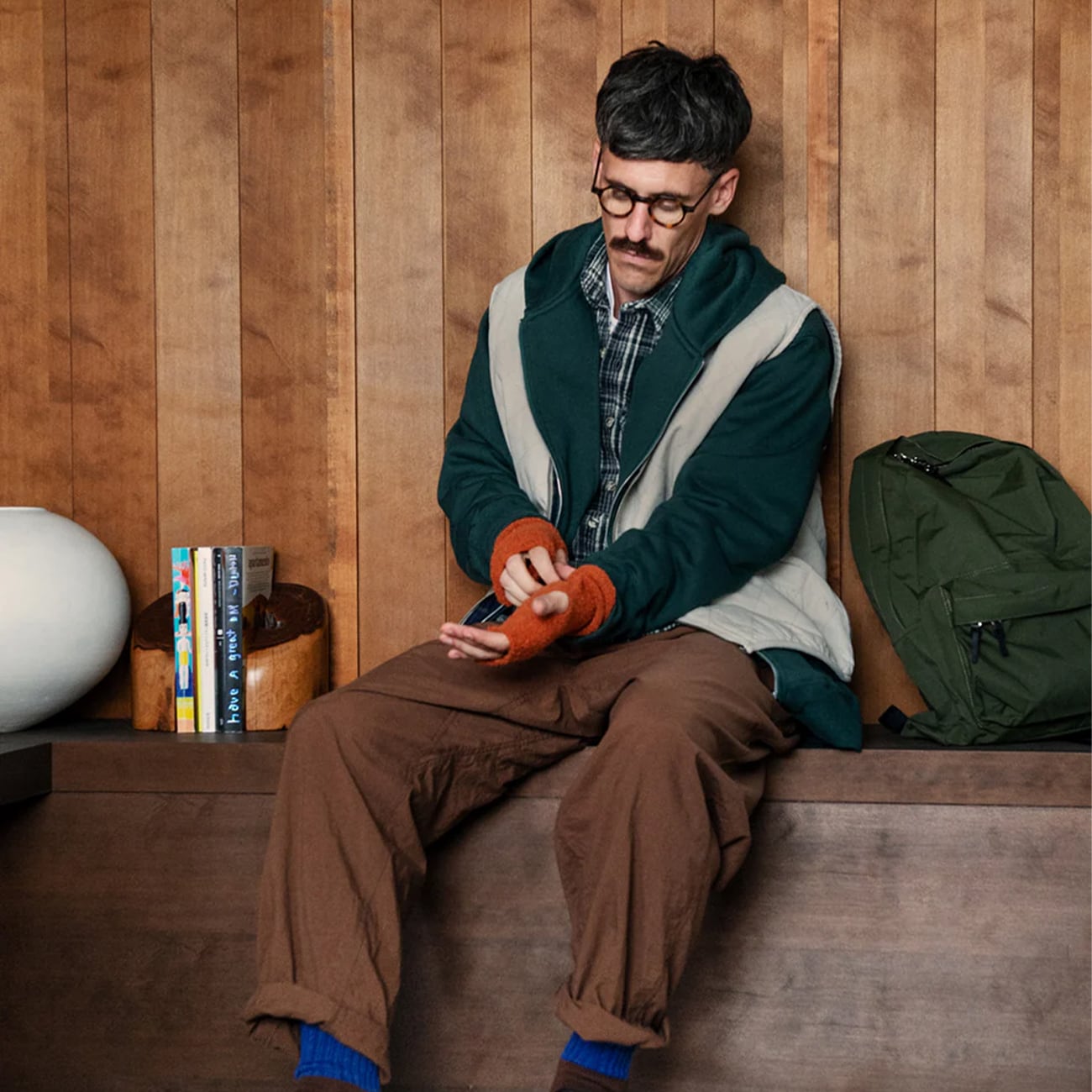 ウールの糸を使用し、フリースのような生地感に仕上げたハンドウォーマーです。手袋とは違い、指先がすべて出ているので、着用しながらスマートフォンやPCの操作も可能。「ホールガーメント」編み機で編み立てることで、縫製・裁断工程がなく、原料の無駄な廃棄が発生しません。また、縫い代が肌にあたることもなく、快適に着用できます。