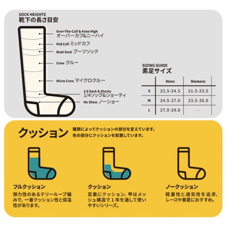 伸縮性のあるアーチサポートがあり、長時間・長期間のハイクにおいても快適に、そして耐久性はDarn Tough(驚く程タフ)です。アクティビティに対応しております。