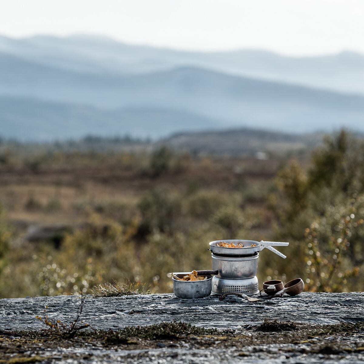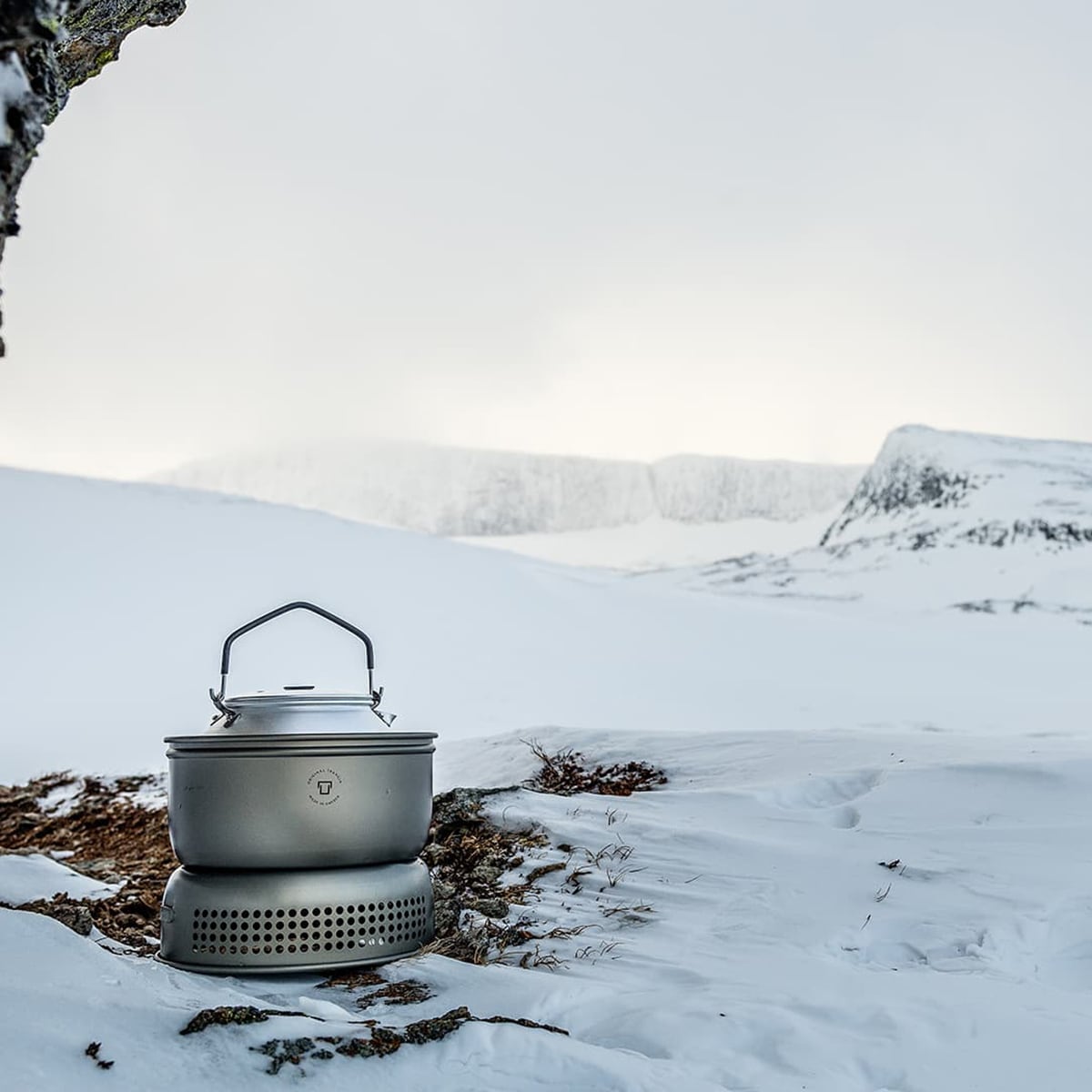 通常よりも強度のあるアルミニウムを使用することで軽量化を図ったストームクッカーです。1.0ℓのソースパンを2つ、内側にノンスティック加工を施したフライパンを組み合わせています。Sモデルには別売の0.6ℓのケトルを収納することも可能です。
