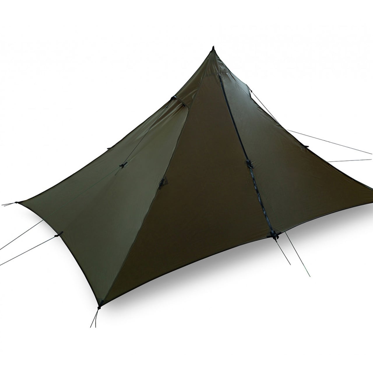 アウトドア、トレッキング用の超軽量タープシェルターであるピラオムタープは、内部容積を大きく確保しつつ耐風性にも優れたデザインで作られています。