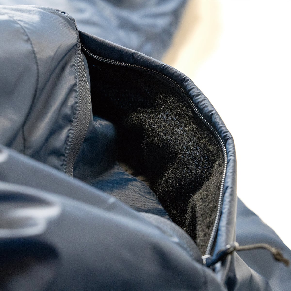 ヘルメット対応フード、ダブルスライダー、グローブ用内メッシュポケットなどビレイパーカーに必要な機能を備えながらも500gを切る、携帯性にも優れた軽量のビレイパーカーに仕上がりました。