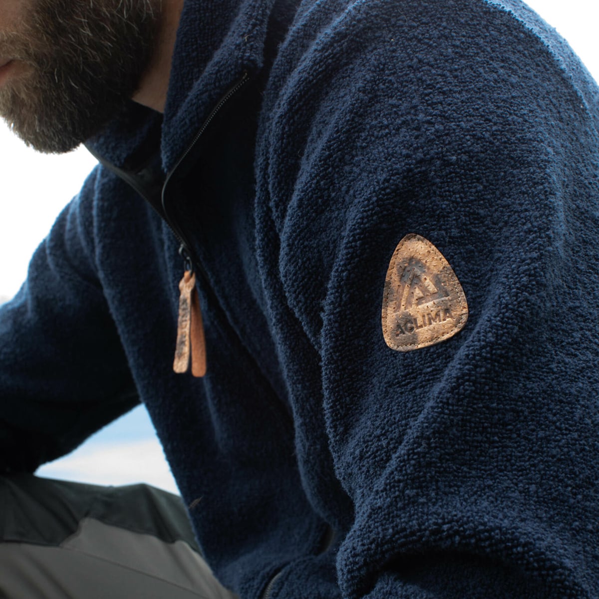 このジャケットに使用されているウールは、エストニアにある Aclima の直営店からのリサイクル素材であり、ロゴやジッパーなどもリサイクル素材になります。