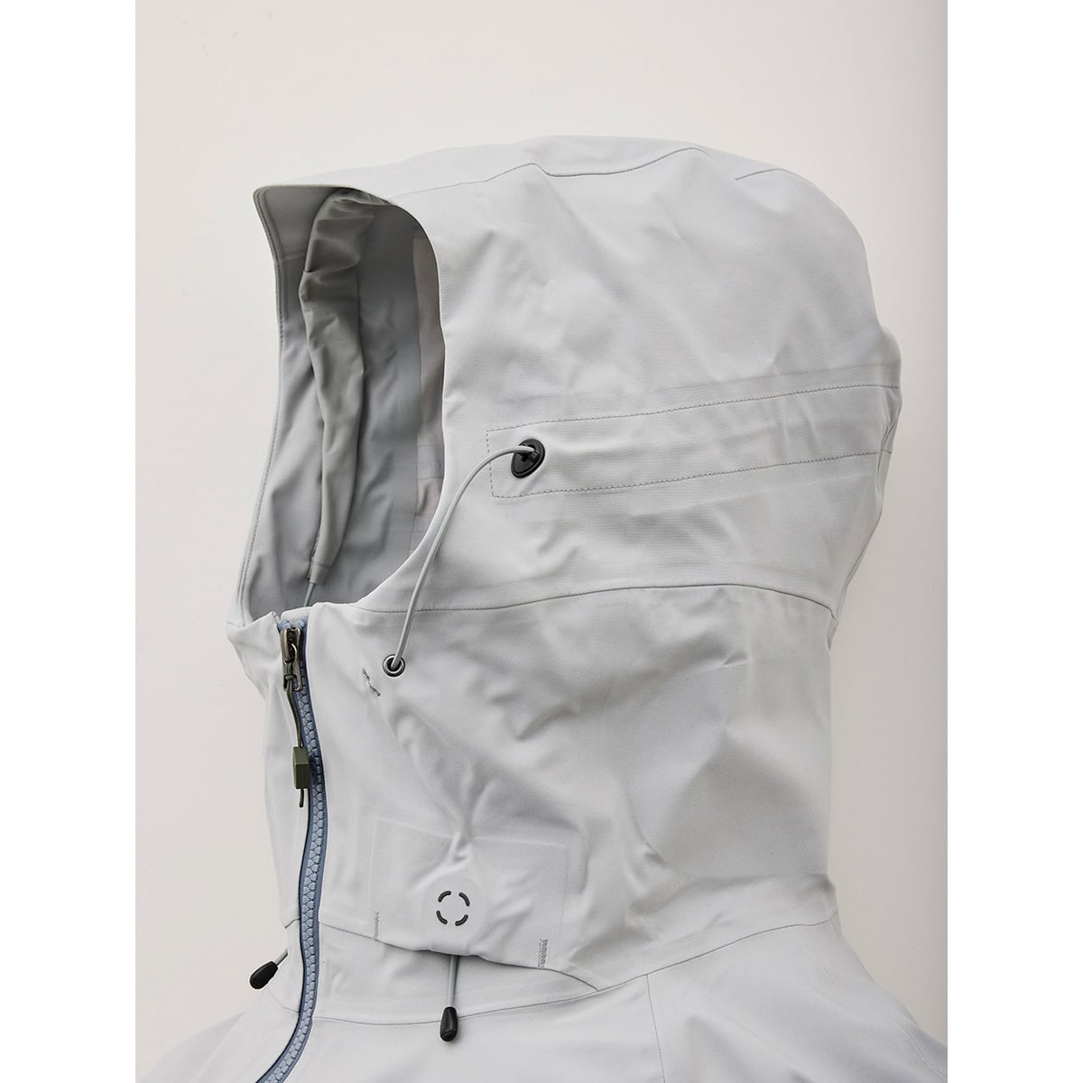 登場以来、基本デザインを変更することなく、常に細部をアップデートして熟成を続けるフラッグシップ。耐久性に優れた高強度ナイロンを使用した防水通気素材「Täsmä」は完全防水性と通気性を両立し、現状で最高水準の撥水加工を施しています。ナイロン素材ながら十分なストレッチ性があり、ROM(可動域)を考え抜いた立体裁断も相まって体の動きを妨げません。胸元から脇腹まで斜めに大きく開く特徴的なベンチレーションは行動中も開閉が容易で、動脈の集まる脇下周りを効果的にクールダウンさせます。前面にアジャスターを集中させたフード、手首を包み込むように締まる袖口など、実際のフィールドで使い込んだからこそ生まれたディテールもまた大きな魅力です。
